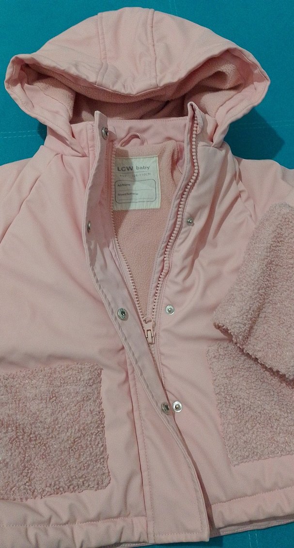 Pastel pembe renkli, düğmeli ve kesimli yakalı, yumuşak ve sıcak kumaştan yapılmış bebek kız tulumu. ❄️