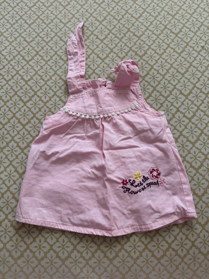 Nakışlı ve fırfırlı detaylara sahip, askılı ve salaş kesim pembe elbise. Bohem tarzı için uygun.