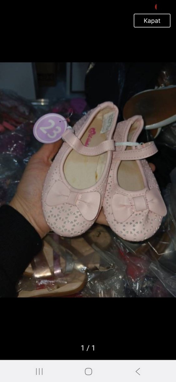 Pembe renkte, tokalı ve nakış detaylı kız çocuk babet ayakkabısı, rahat kauçuk malzemeden üretilmiştir.