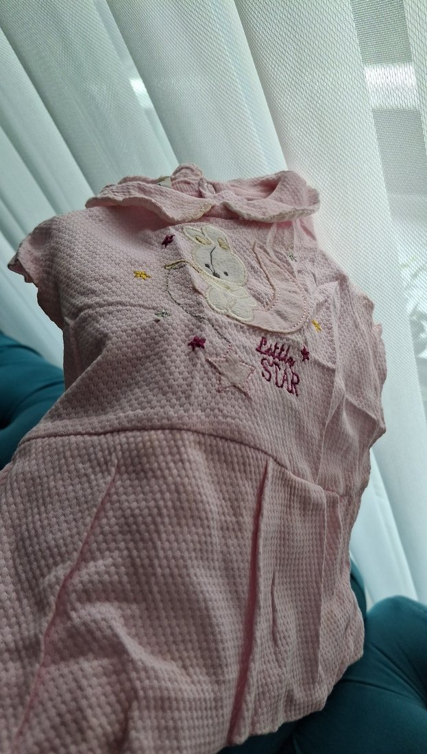 Pastel pembe kız çocukları için yumuşak sentetik kumaştan, nakışlı detaylara ve kapüşona sahip bornoz. Rahat ve konforlu. temizdir