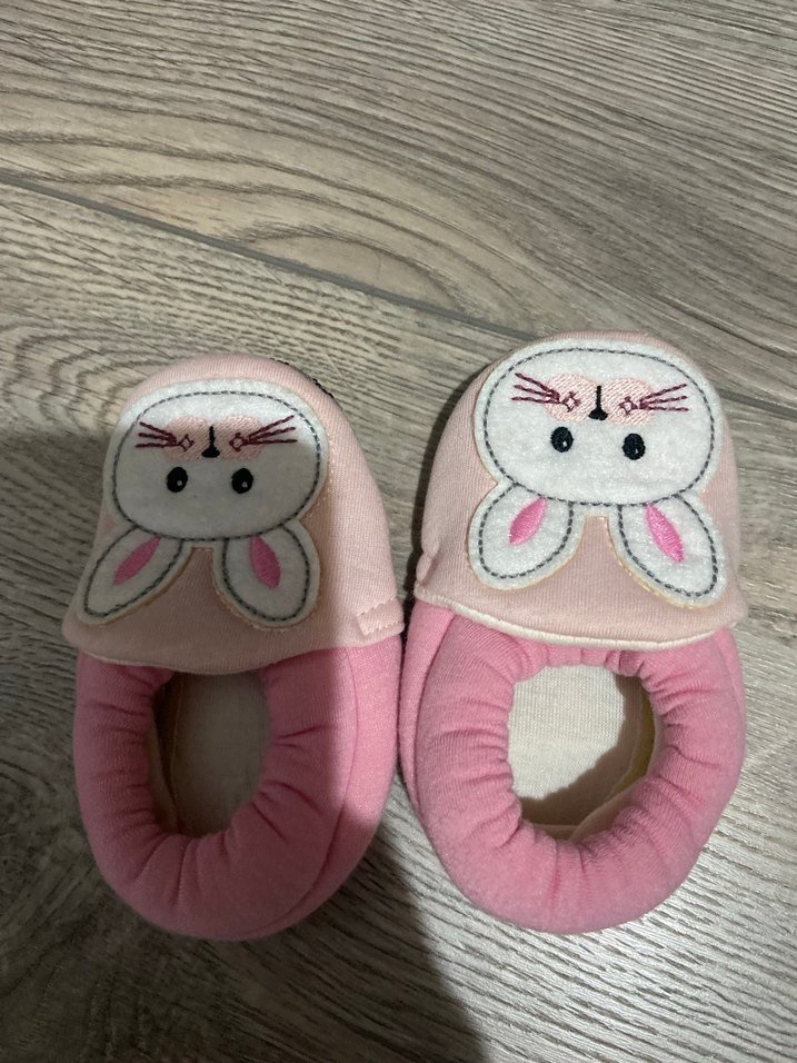 Yumuşak kumaştan, nakışlı tavşan desenli ve cırt cırtlı pembe kız çocuk ev terliği