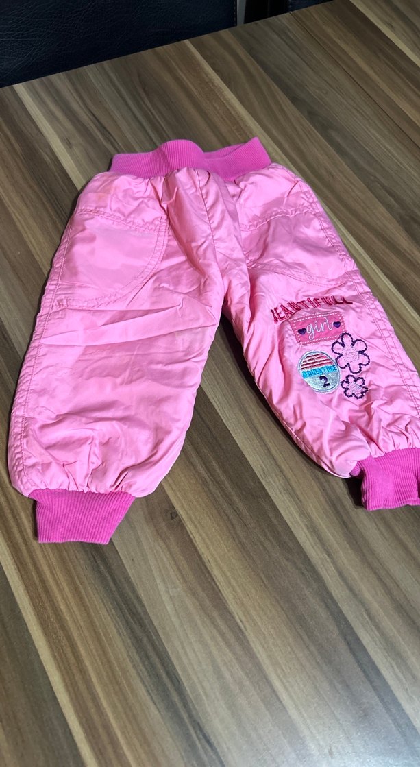 Bol kesim pembe kız çocuk pantolonu, fermuarlı cepler ve renkli nakış detaylarıyla rahat ve şık bir sokak stili sunar. İçi polar vardır üzerinde füme meyve lekesi var yıkanınca geçecek cinsten