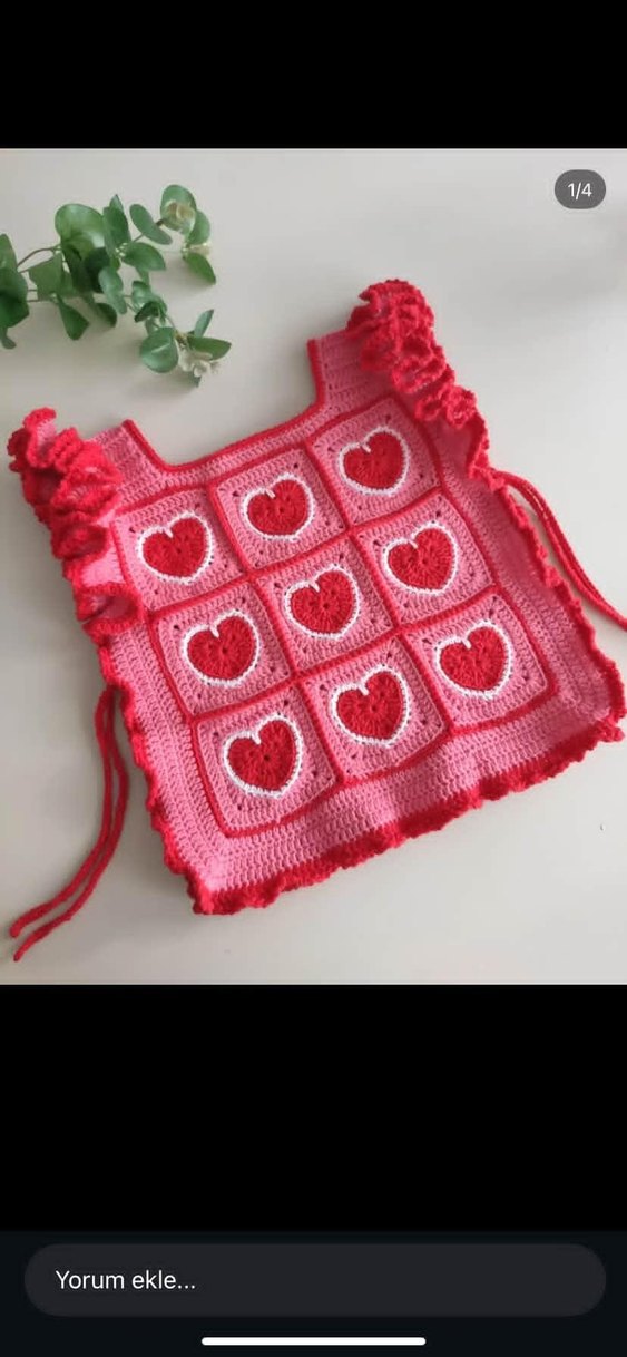 Pembe, nakışlı kalp desenli ve fırfırlı askılı, bohem tarzda kız çocuk triko yelek. Dar kesim ve yuvarlak yaka detaylı. 0-6 aylık bebeklere uygundur Yaş farkı fiyata yansır bilginize