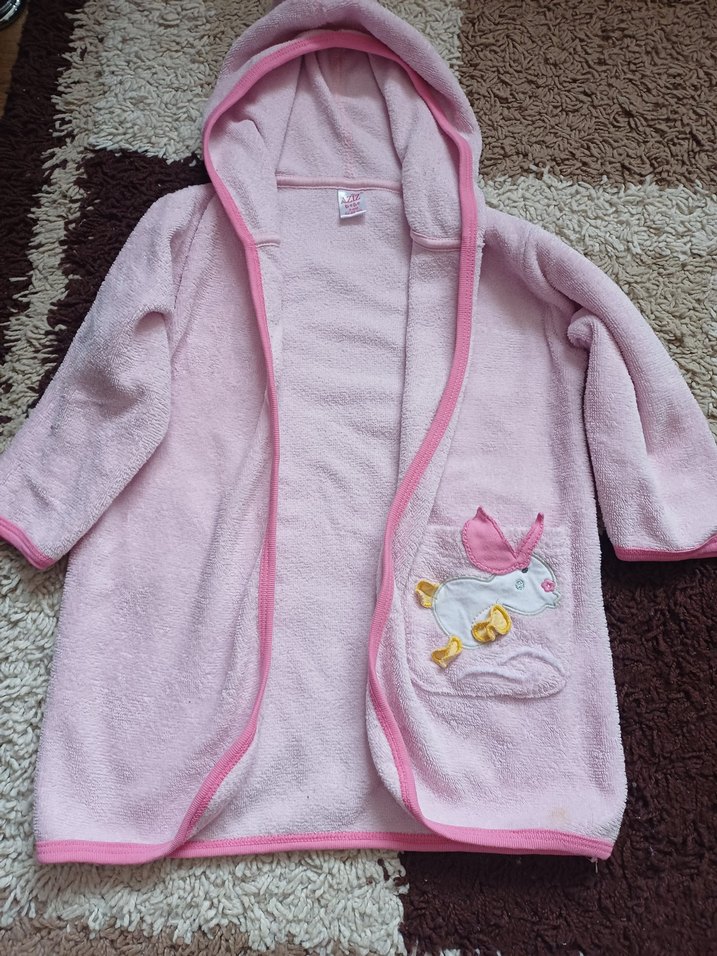 Kız Çocuk Pembe Nakışlı Kapüşonlu Bornoz