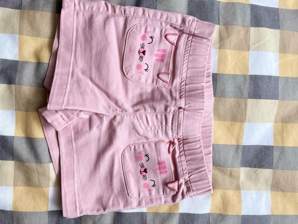 Kız çocuklar için pamuklu, pembe, nakışlı ve beli lastikli, fitted kesim şort. Pastel tonlarda, trend ve rahat stil.