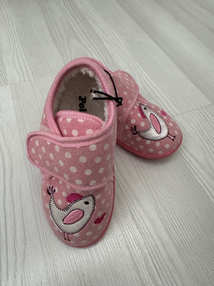 Hiç kullanılmadı sıfır ürün Pembe renkli, nakışlı kuş desenli, cırt cırtlı kız çocuk terliği. İç kısmı yumuşak ve sıcaktır. Yeni ürün hiç kullanılmadı Polaris 27 numara