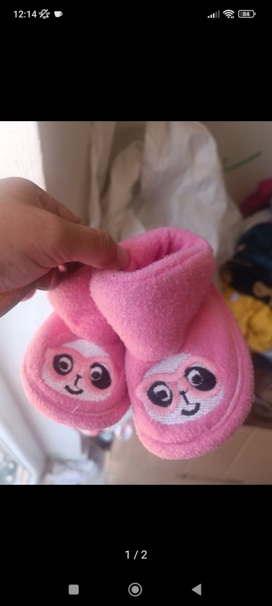 Kız çocukları için renkli nakış desenli, örgü dokulu pembe yumuşak ev terliği. Sıcak tutar ve rahatlık sağlar, günlük kullanıma uygundur.