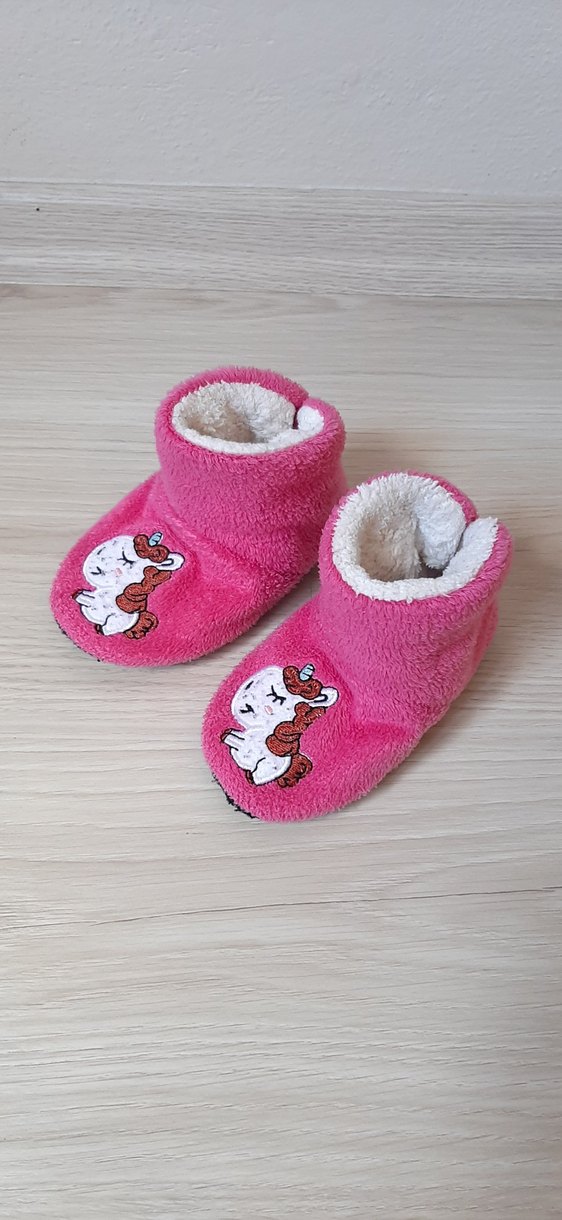 Kız çocukları için pembe, yumuşak ve sıcak dokulu ev terliği. Nakışlı ve örgü detaylı, rahat kullanım sağlar. numarası yok standart