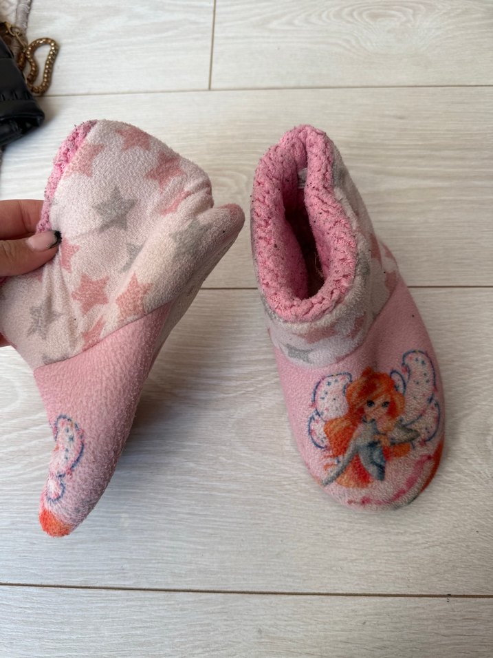Kız çocuklar için pembe renkli, yumuşak tüylü iç astarlı, nakışlı peri figürlü sıcak ev terliğidir. Örgü dokusu konfor sağlar.