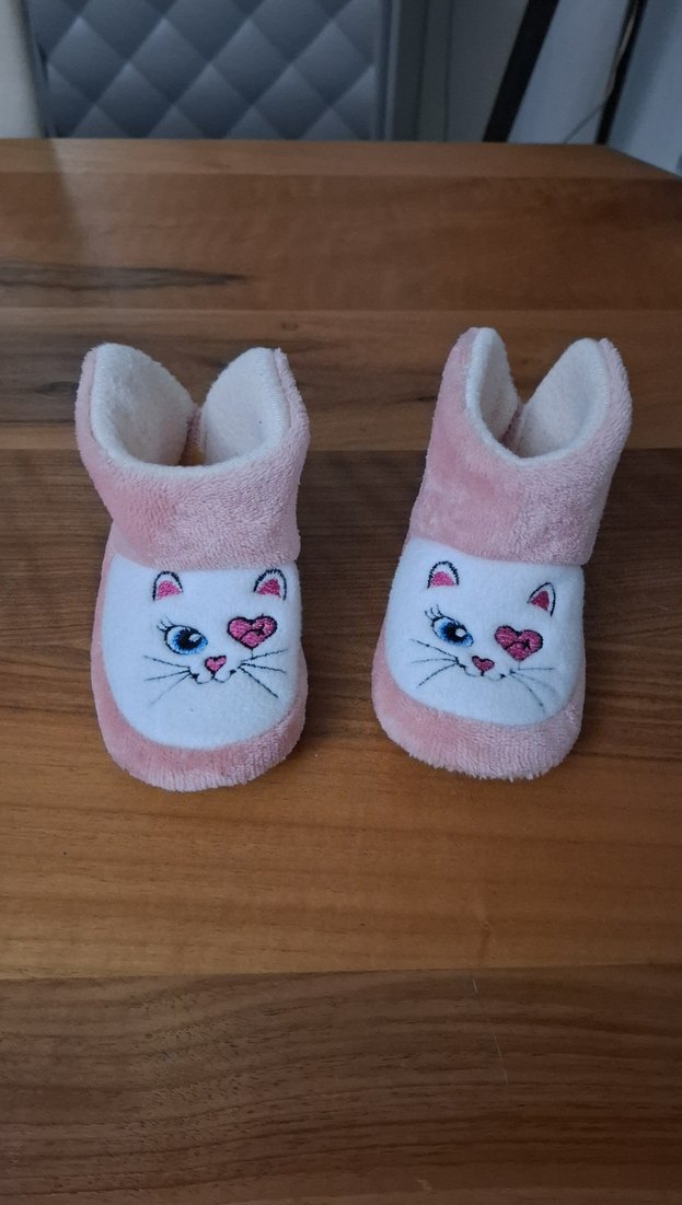 Yumuşak kürklü detaylara ve nakışlı kedi yüzüne sahip pembe kız çocuk sıcak terliği, rahatlık için yumuşak kumaştan yapılmıştır.