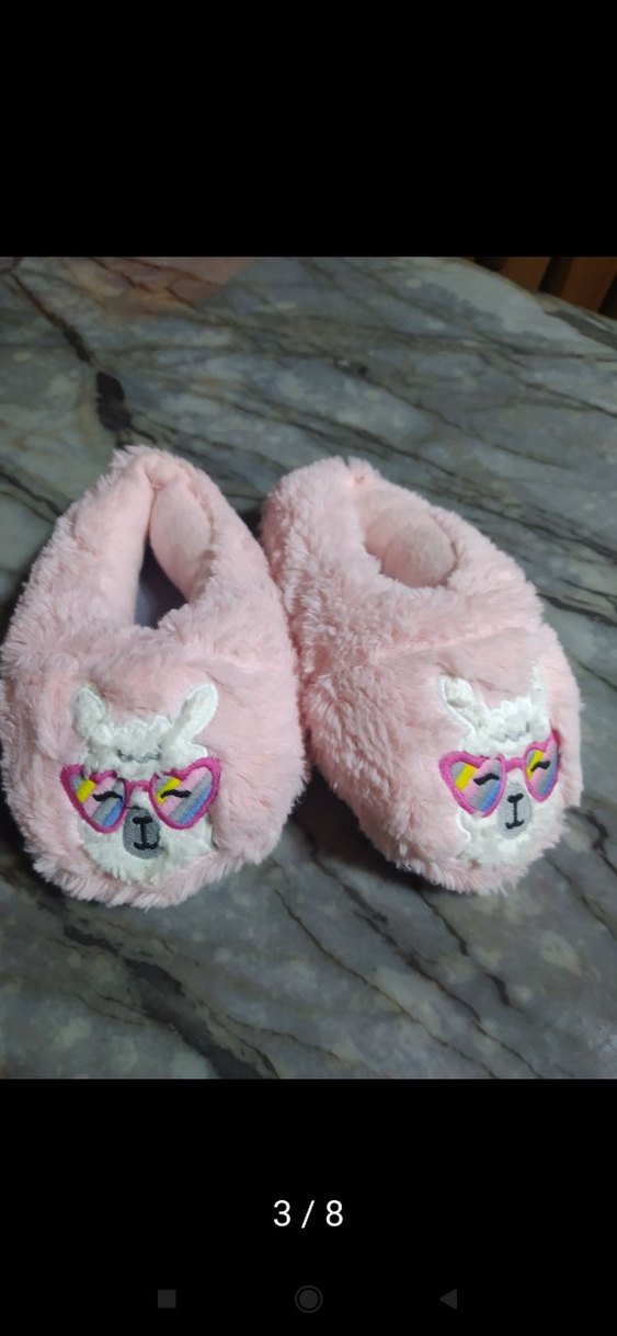 Nakışlı lama figürlü, renkli güneş gözlüklü, yumuşak tüylü pembe kız çocuk pandufu yeni ürün . Rahat ve şık günlük kullanım için uygundur.