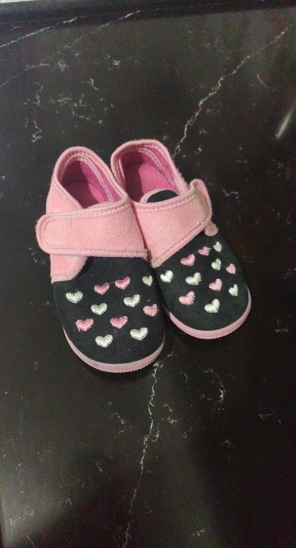 Kız çocukları için renkli nakışlı kalp desenli, cırt cırtlı pembe sıcak terlikler. Kauçuk tabanlı, sokak tarzına uygun rahat tasarım.