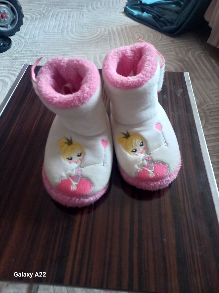Kız çocukları için pembe, nakışlı ve örgü detaylı sıcak terlikler. Yumuşak ve sıcak tutan kürk kumaştan yapılmıştır.