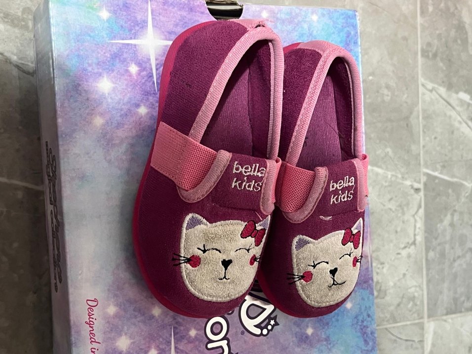 Kız çocukları için pembe nakışlı kedi desenli, yumuşak ve sıcak polar kumaştan yapılmış, velcro bantlı terlikler. Rahat ve günlük sokak stili için uygun.