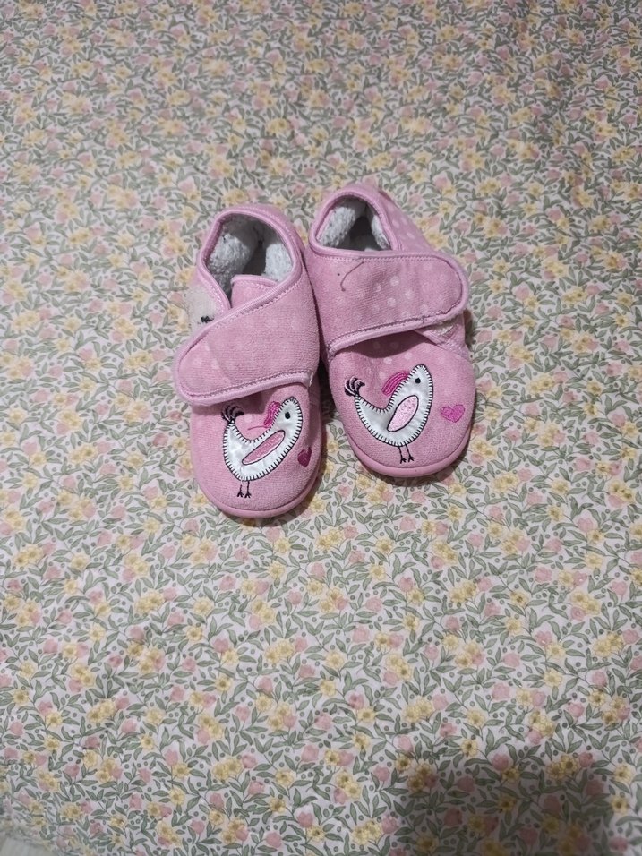 Nakışlı kuş desenli, renkli detaylara sahip pembe kız çocuk sıcak terlik. Kolay kullanım için cırt cırtlı bant ve dayanıklı kauçuk taban içerir.