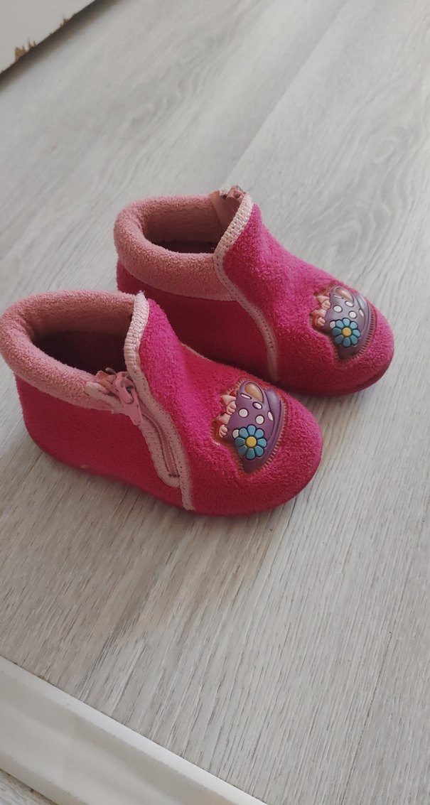 Nakışlı desenli, cırt cırtlı pembe kız çocuk terliği, yumuşak ve sıcak kumaştan, renkli bohem tarzda.
