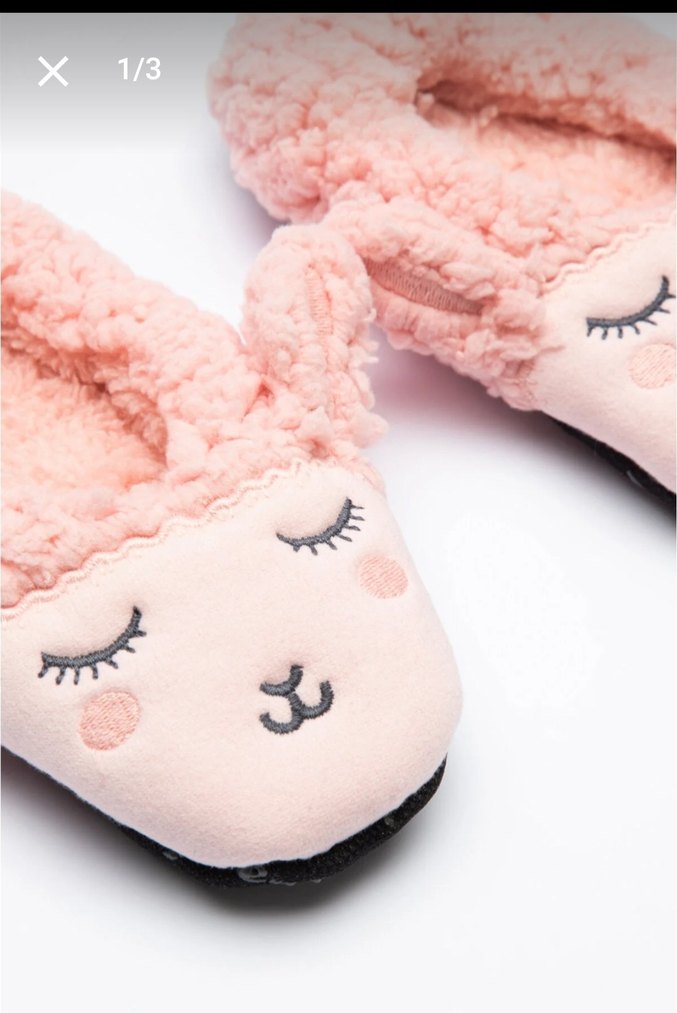 Yumuşak örgü dokulu, nakışlı uyku yüzü desenli, polar kumaştan yapılmış kız çocuk pembe sıcak terlik.