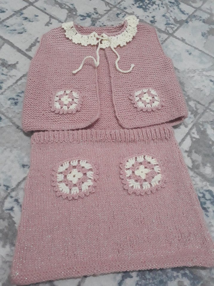 Kız Çocuk Pembe Nakışlı Triko yelek etek Takımı sipariş alınır