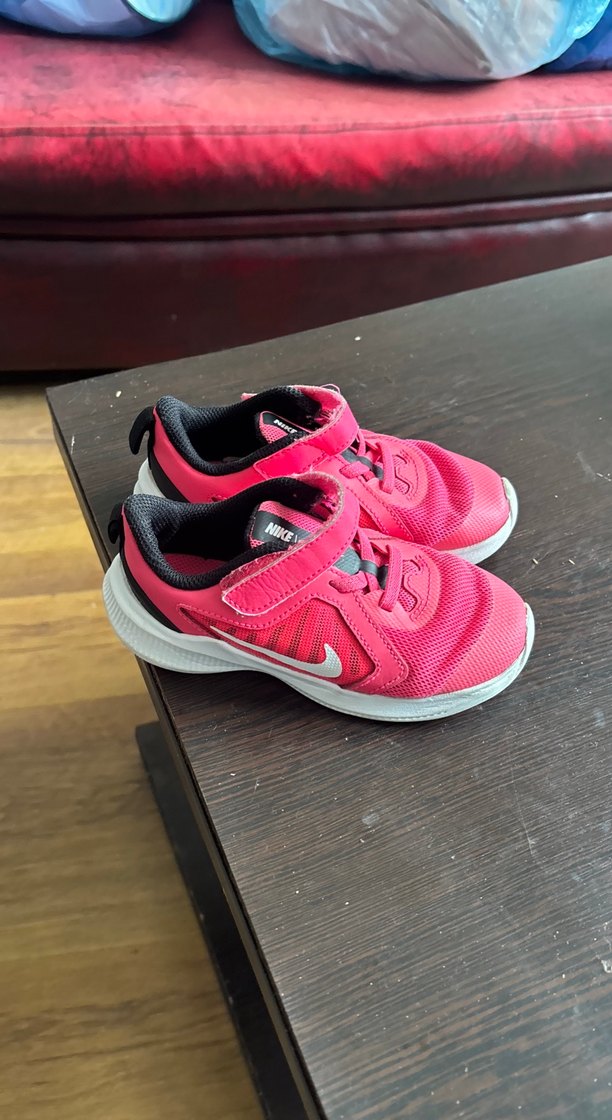 Nike marka kız çocuk spor ayakkabısı, canlı pembe renk ve bağlama kolaylığı sağlayan cırt cırtlı bant içerir. Kauçuk tabanlı, rahat sokak stili.