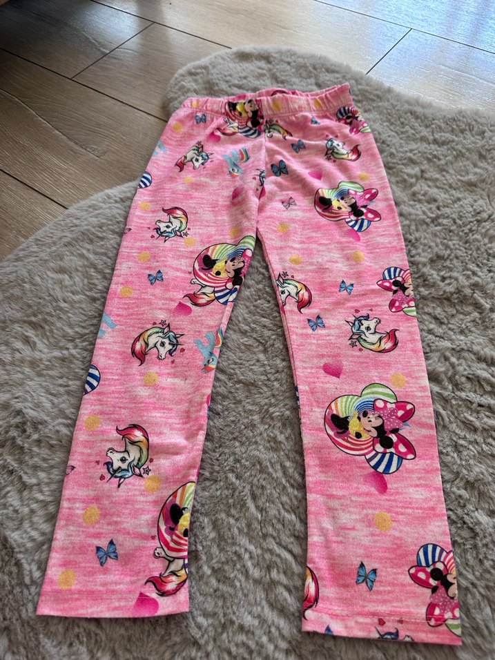 Rahat kesim, pembe renkte, renkli batik ve çizgi film desenli kız çocuk taytı. Yumuşak örgü kumaştan, günlük sokak stili için uygun.