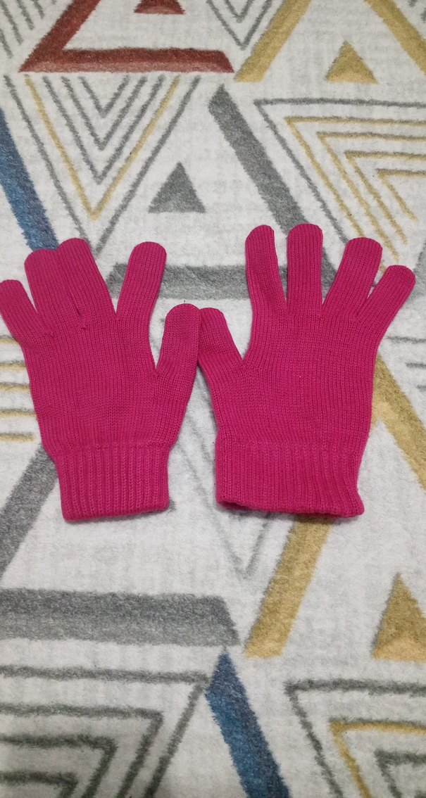 Kız çocukları için örgü, yumuşak ve sıcak kumaştan yapılmış düz pembe eldivenler. Soğuk havalar için rahatlık sağlar.