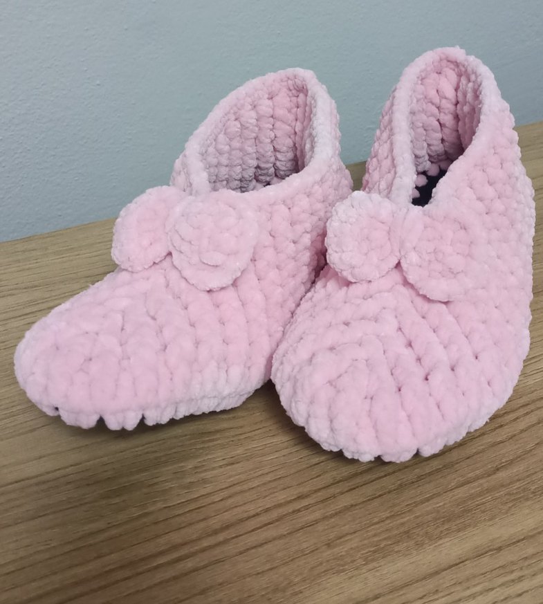 Kız çocuklar için pembe örgü ev terlikleri, yumuşak dokusu ve sade, düz tasarımıyla günlük kullanım için uygundur.