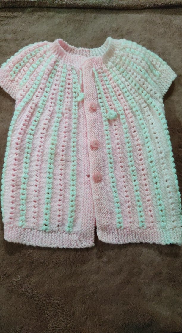 Pastel pembe renkte, bohem tarzda, uzun kollu ve regular fit kız çocuk örgü hırka. Düğmeli ve desensiz örülmüş. el örgüsüdür