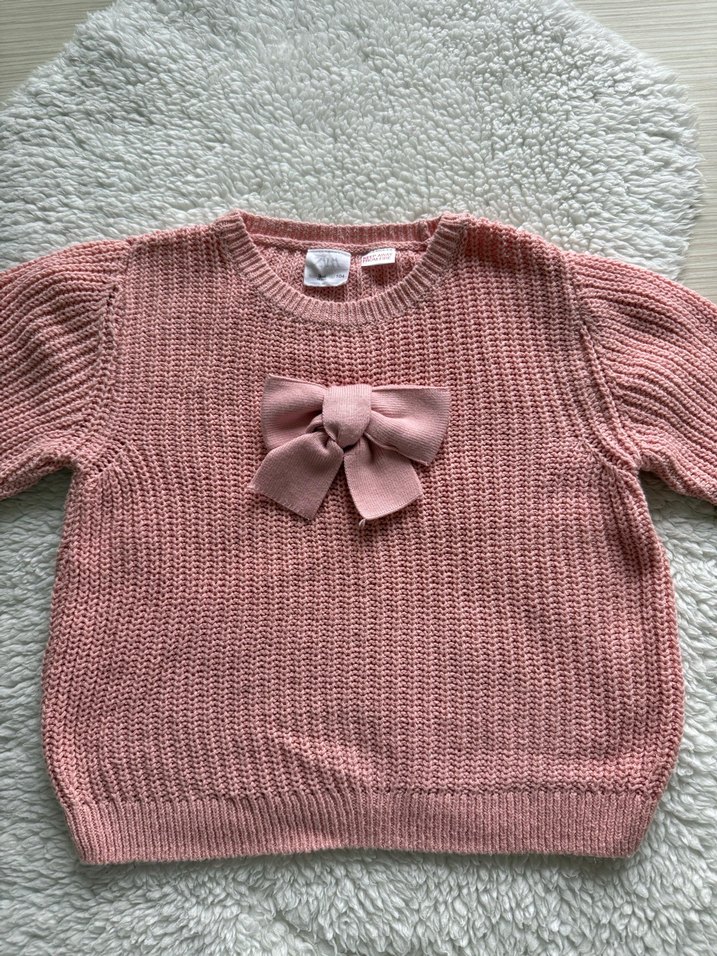 Kız Çocuk Pembe Örgü Kazak Fiyonk Detaylı