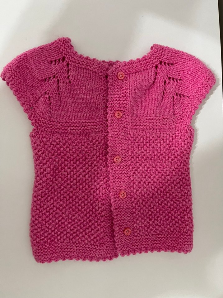 Kız çocukları için pembe renkli, kolsuz ve fitted kesim örgü hırka. Bohem tarzda, düğmeli ve dokulu örgü deseni ile tasarlanmıştır.