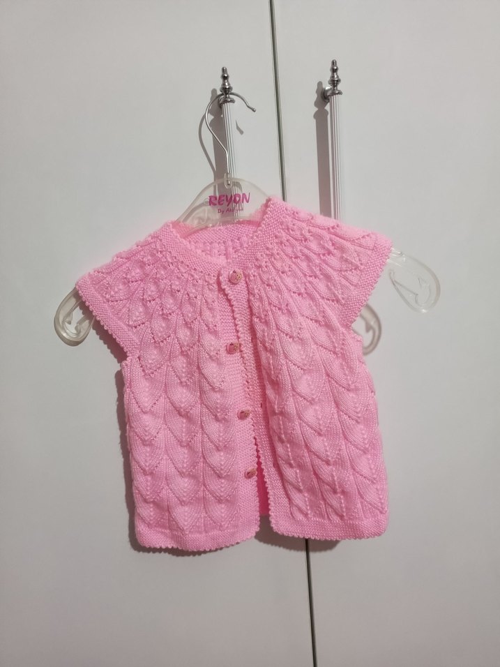 Kız Çocuk Pembe Örgü Kolsuz Hırka