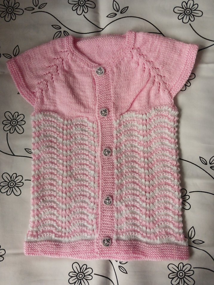 Yeni örüldü taptaze yelek 1.5 yaş Kız çocuklar için pamuklu, pembe ve beyaz dalga desenli, kolsuz, bohem tarzda, düğmeli ve vücuda oturan örgü hırka.