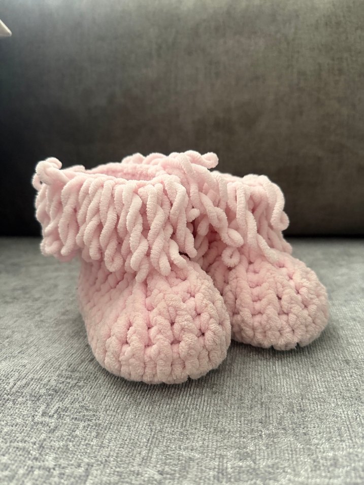 Pembe renkte, kız çocukları için örgü ve sıcak tutan, düz ve desensiz tasarıma sahip ev botu 22-26 arası olur