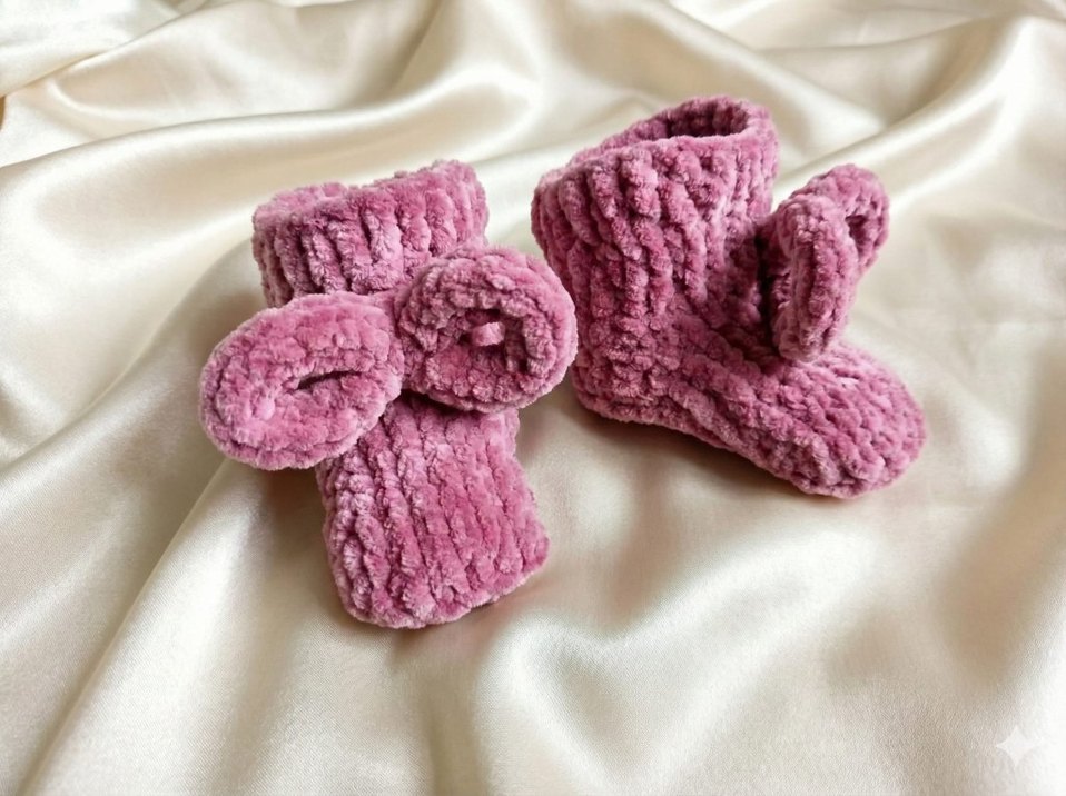 Kız çocukları için pembe renkli, yumuşak dokulu örgü sıcak terlikler, bohem tarzda ve şirin fiyonk detaylıdır.