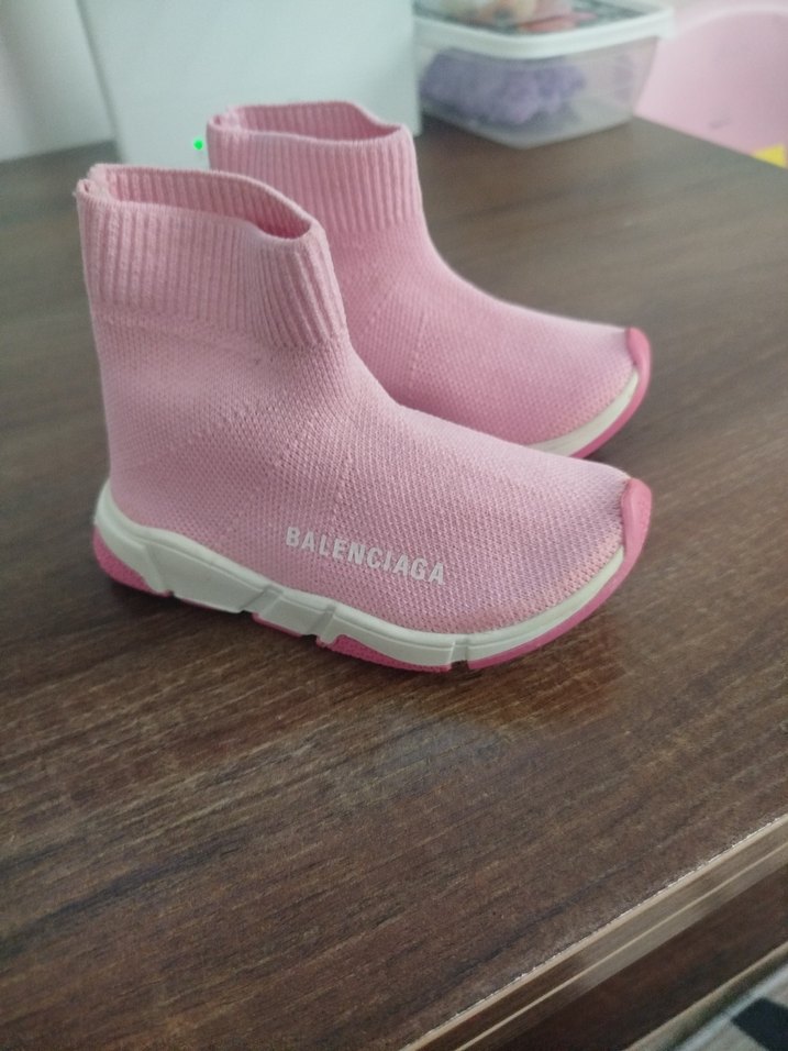 Pastel pembe renkli, örgü üst yüzeye ve kauçuk tabana sahip kız çocuk spor ayakkabısıdır. Yanında "BALENG" yazısı bulunur. arkasında sararma var