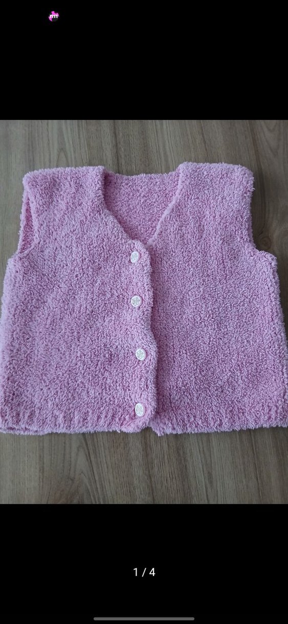 Pastel pembe renkli, düğmeli, kolsuz örgü kız çocuk süveter. Salaş kesimi ve yuvarlak yaka detayı bulunur. sayılı kullanılmıştır