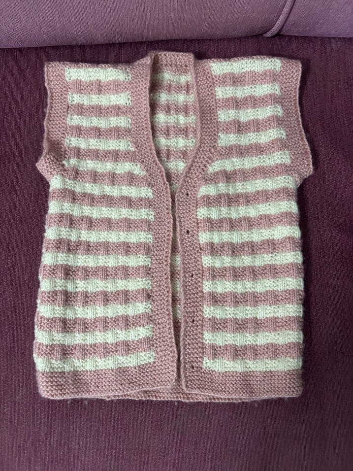 Kız çocuklar için pastel pembe, kolsuz ve örgü kumaştan yapılmış, fit kesim ve desensiz çizgili yelek sokak stili için uygundur.