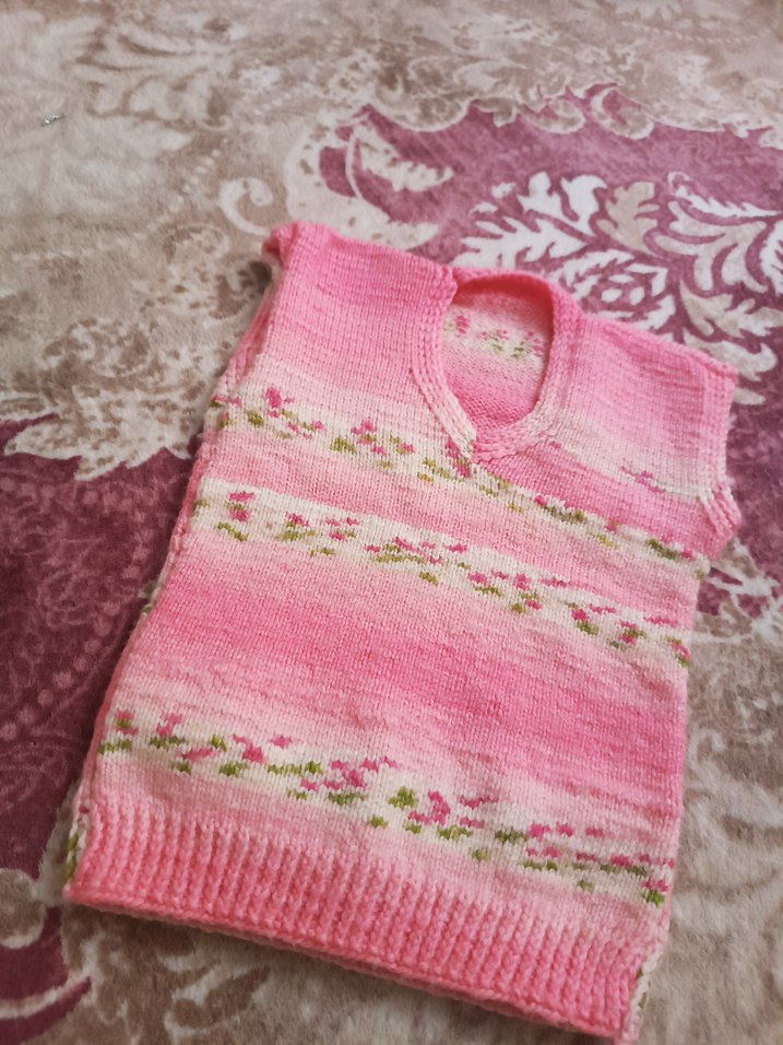 Kız çocukları için örme dokulu, kolsuz, 3-9 ay arasıdir