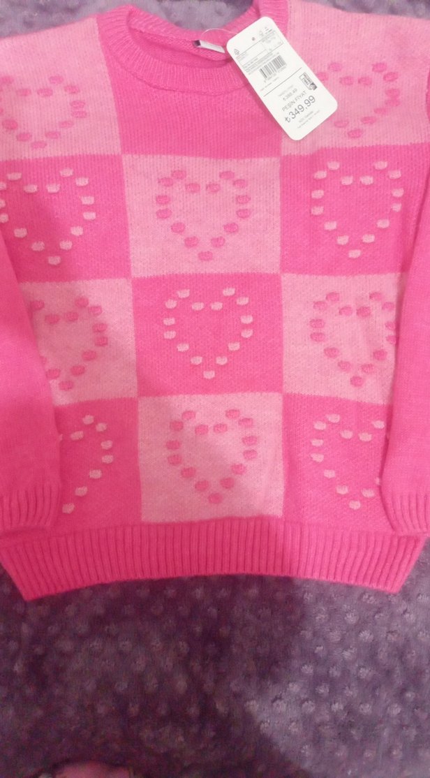 Fitted kesim pembe örme kız çocuk kazak, uzun kollu ve kalp desenli, yumuşak triko kumaştan üretilmiştir. Rahat bir günlük kullanım sağlar.