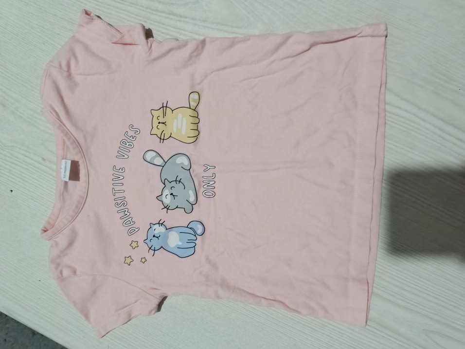 Kız Çocuk Pembe Pamuklu Baskılı Tişört