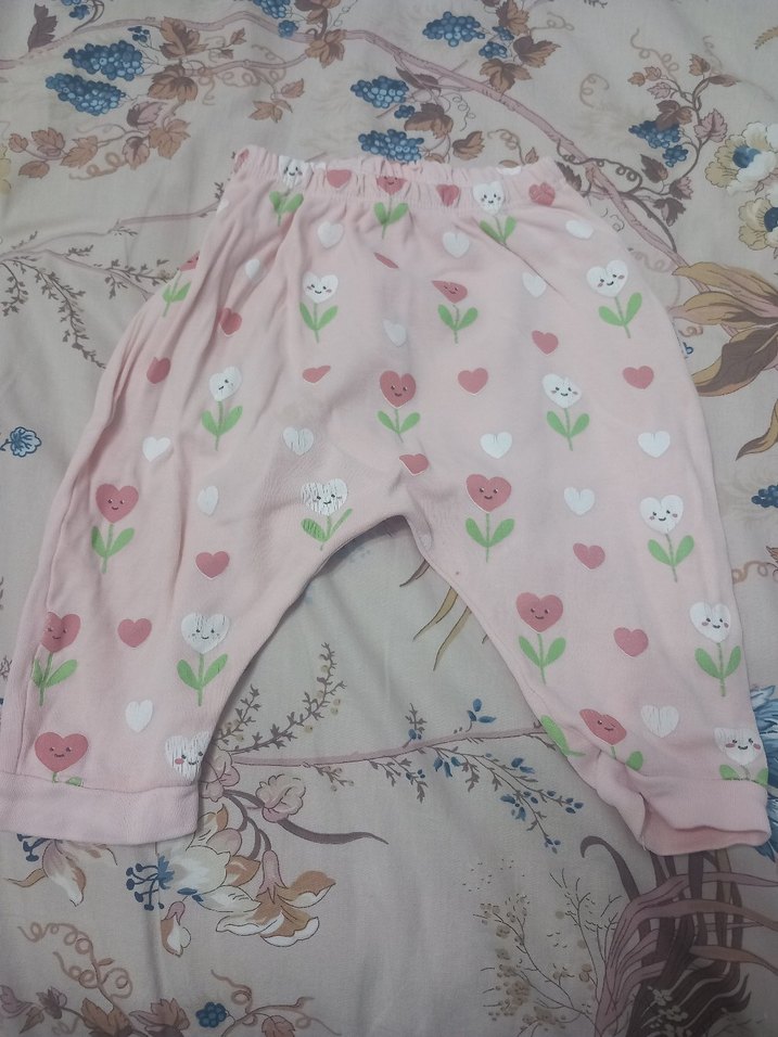 Pamuklu, bol kesim, pastel pembe renkli, gülen çiçek ve kalp desenli kız çocuk taytı. Dantel detayları ile rahat ve trend bir görünüm sunar.