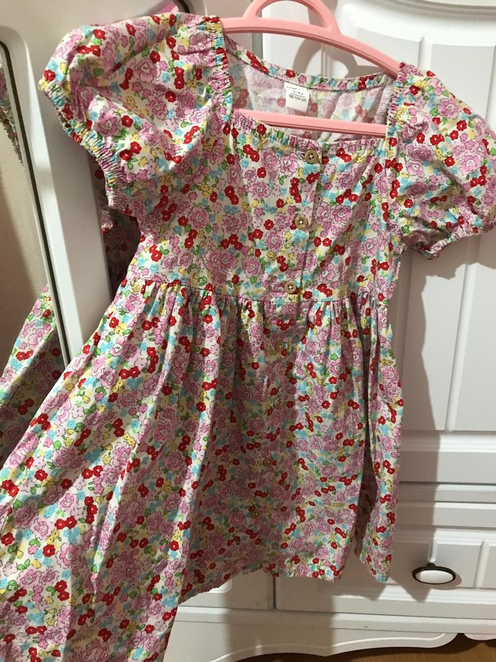 3 4 yaşhiç kullanılmadı sadece etiketi yoktur Kız çocukları için pamuklu, kısa kollu, bol kesim pembe elbise. V yaka ve fırfır detaylarıyla bohem tarzı yansıtıyor.