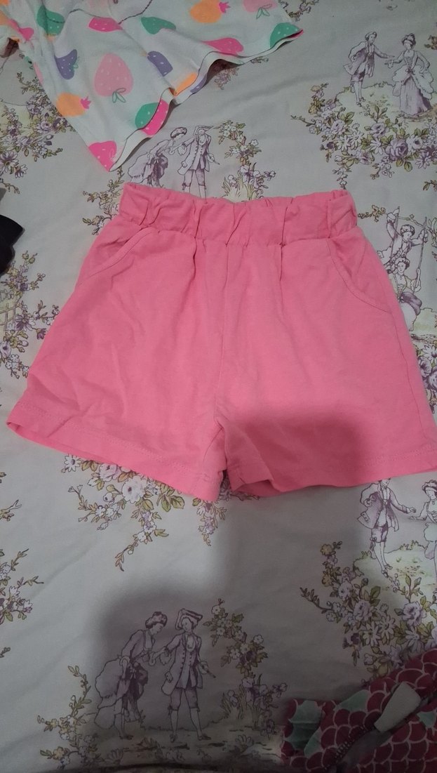 Pastel pembe pamuklu kız çocuk şortları, bol kesim ve fırfır detayları ile rahat sokak stili için uygundur.