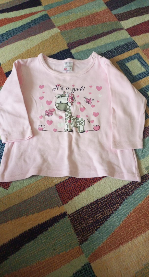 Pastel pembe renkli, pamuklu kumaştan yapılmış kız çocuk uzun kollu tişört. Bol kesim ve yuvarlak yaka, önünde 'It's a girl!' yazılı baskılı zürafa ve kalpler bulunur.