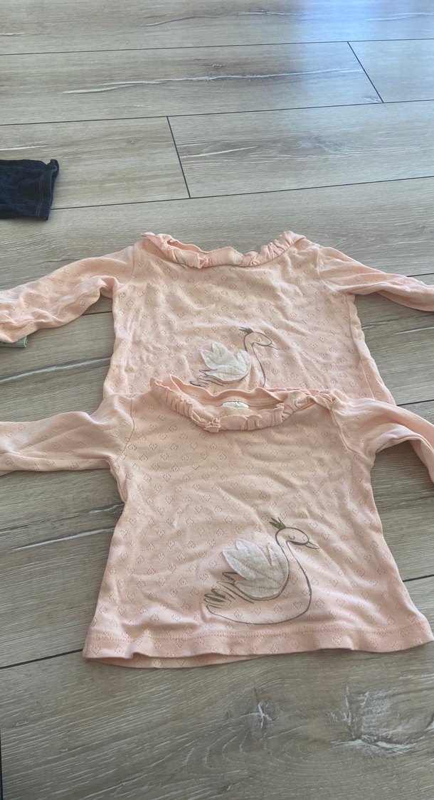 Kız çocukları için pamuklu, uzun kollu, bisiklet yaka ve fırfırlı detaylara sahip pembe tişört. İnce kuğu desenli, sade ve rahat bir model.