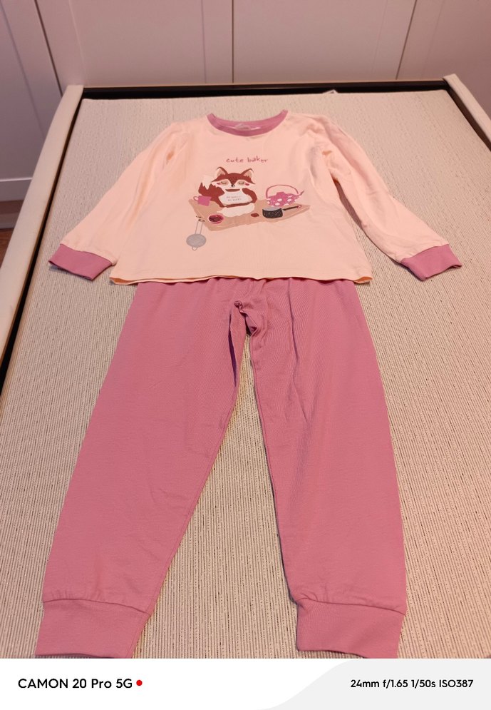 Kız çocuk için uzun kollu, yuvarlak yakalı, baskılı pamuklu pijama takımı. Örme manşetleri rahatlık sağlar. Konforlu ve şık bir uyku seti.