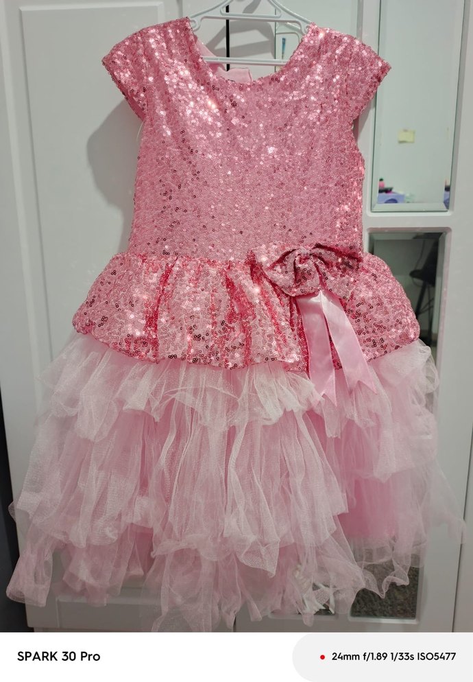 Kız Çocuk Pembe Payetli Fırfırlı Elbise