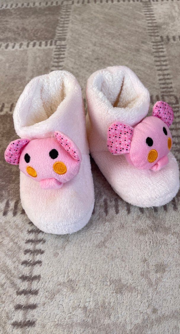 Kız çocukları için yumuşak ve sıcak peluş kumaştan üretilmiş, pembe renkli işleme detaylı peluş ev terlikleri. Rahat ve sıcak tutar.