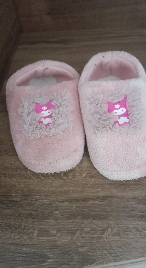 Kız çocuklar için yumuşak pembe peluş ev terliği, kürk detaylı ve nakışlı pastel desenli. Rahat ve gündelik şıklık için uygun.