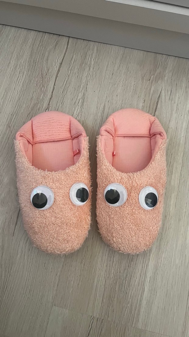 Kız çocukları için peluş detaylı, pembe renkte yumuşak ve sıcak ev terliği. Göz detayları ile sade ve konforlu tasarım.