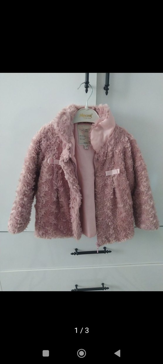 Kız çocukları için bol kesim, yumuşak ve sıcak kumaştan yapılmış, kürk detaylı ve kesimli yakalı pembe mont. Sade ve normcore tarzda, günlük kullanıma uygun.